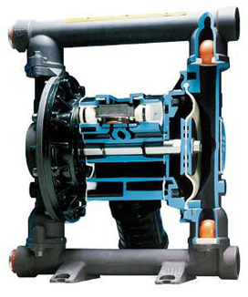 氣動(dòng)雙隔膜泵的特點(diǎn)和單隔膜泵的類似,只不過雙隔膜泵指雙吸液腔,單隔膜泵就一個(gè)吸液腔。但是,隔膜泵壓力無法提高,被氣源壓力限制。隔膜泵流量通常不會(huì)太大,多數(shù)應(yīng)用在小系統(tǒng)中。跟傳統(tǒng)用在大流量的離心泵還是有使用場(chǎng)合上的不同。